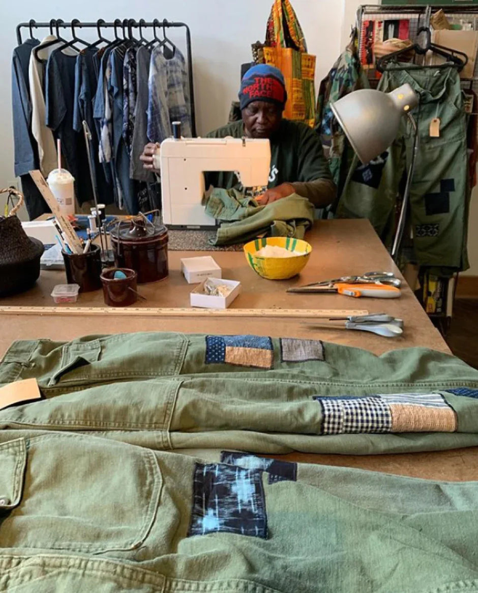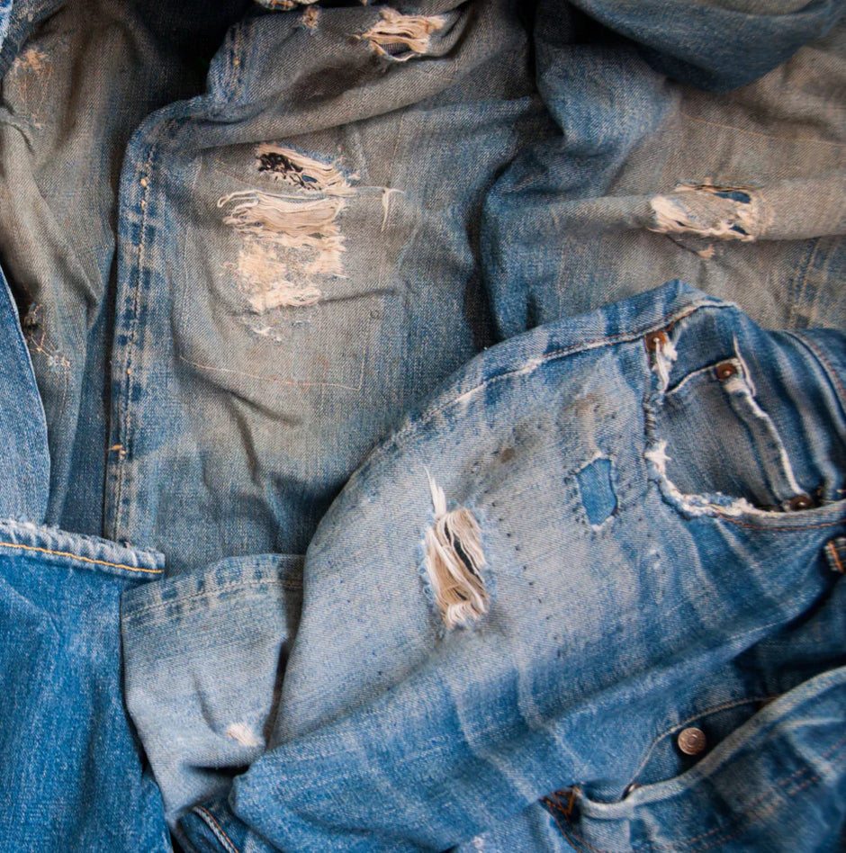 Salvaged denim ready to be recycled into Forager Co. garments.