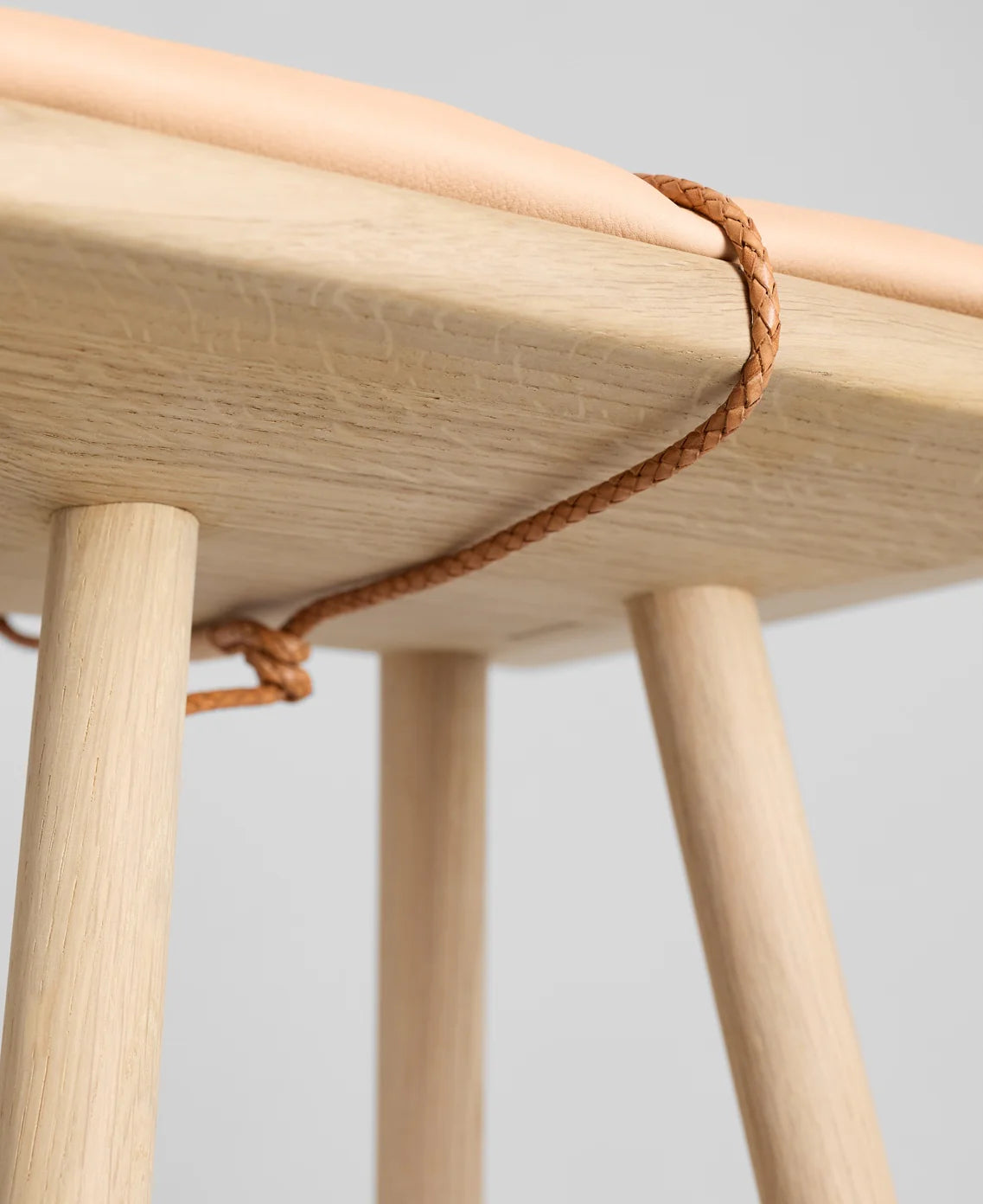 Jubilee Georg Stool comes with a soft, comfortable leather cushion secured to the stool with a braided leather strap.
