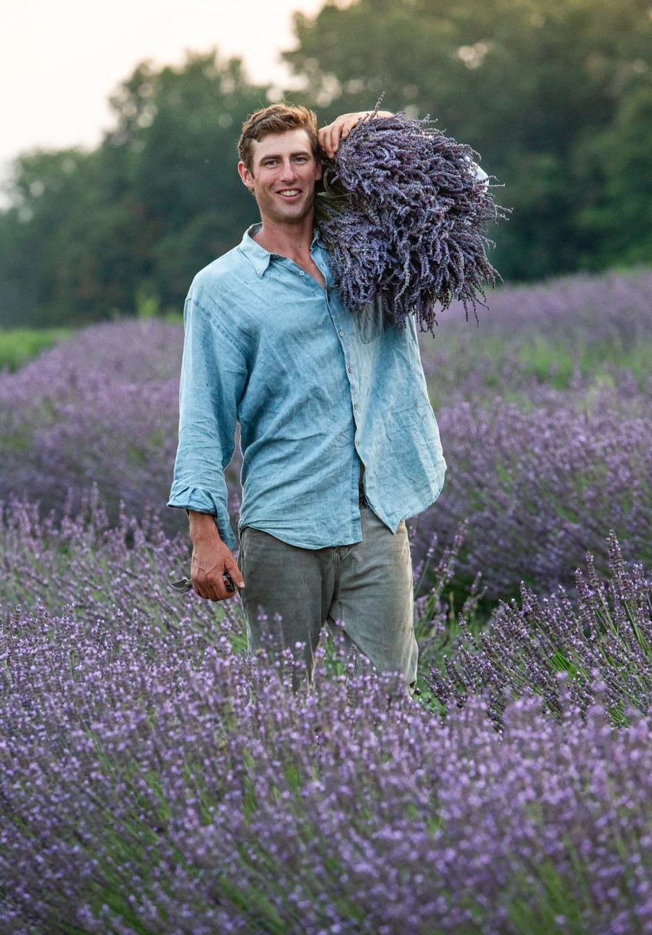 Pictured: Peter harvesting Lavender for bunches and distillation.
