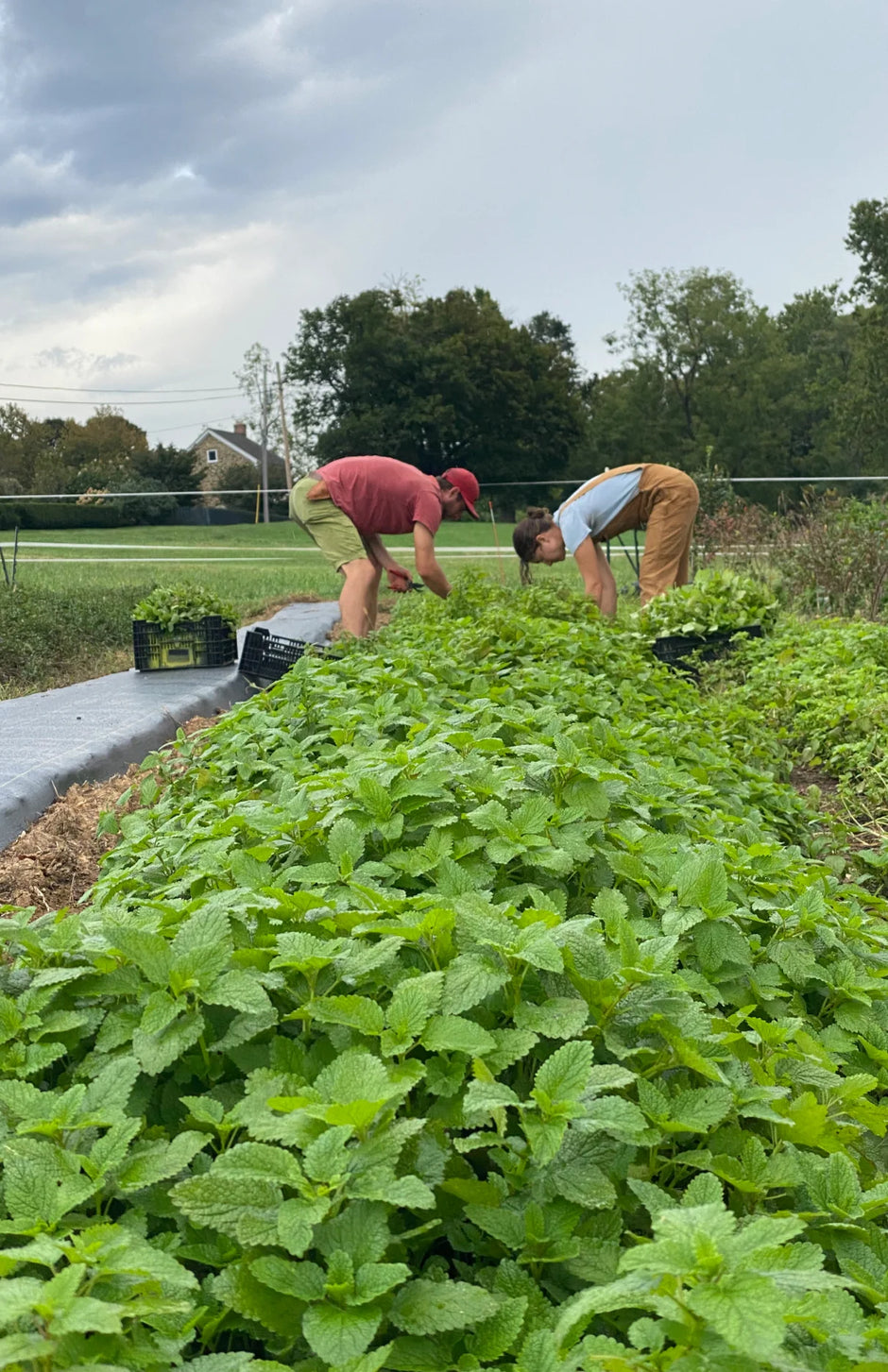 Pictured: Peter and Leah picking Lemon Balm used for dried teas and hydrosols.