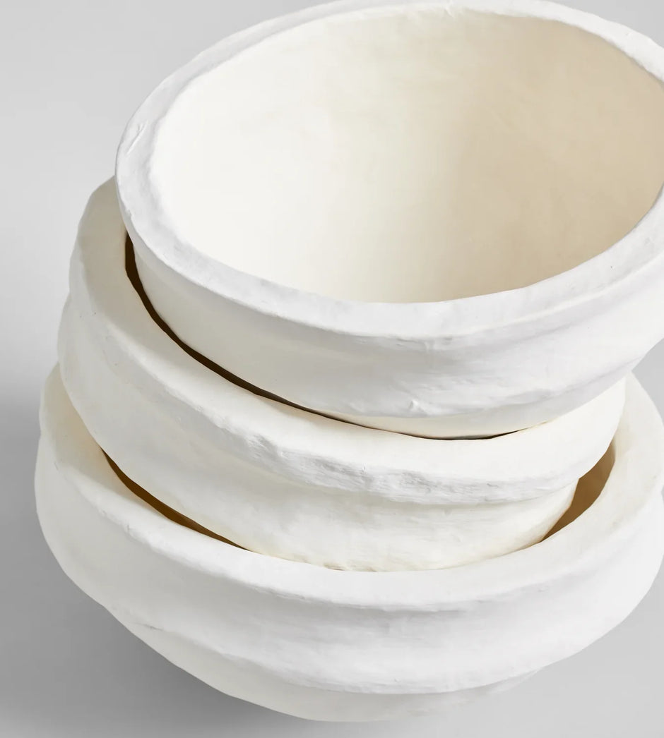 Use our versatile Papier Mache Bowl on a cocktail table to display bits of found nature or show off our Pale Wood Chains. They also work as centerpiece bowls on a dining table or hall console.