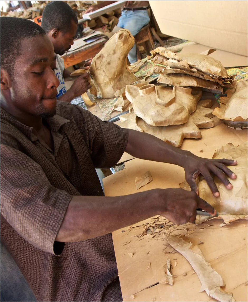 Pictured: Papier Mache artists at the Caribbean Craft workshop.