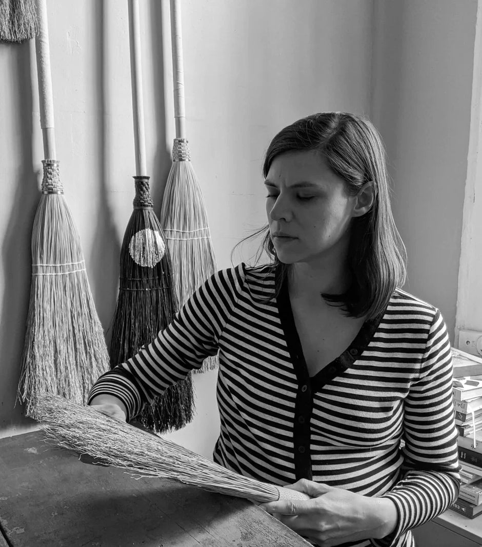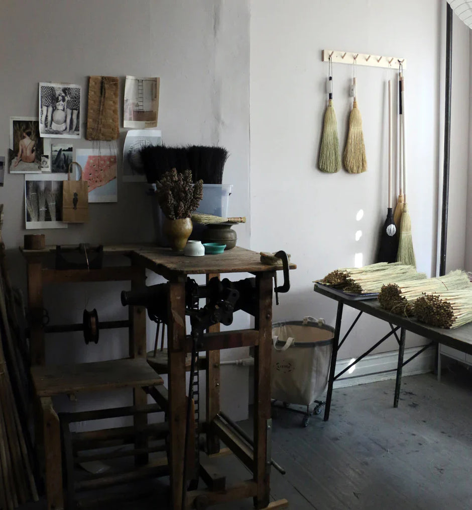 Pictured: Custom broom maker, Erin Rouse, at work in her Brooklyn studio.