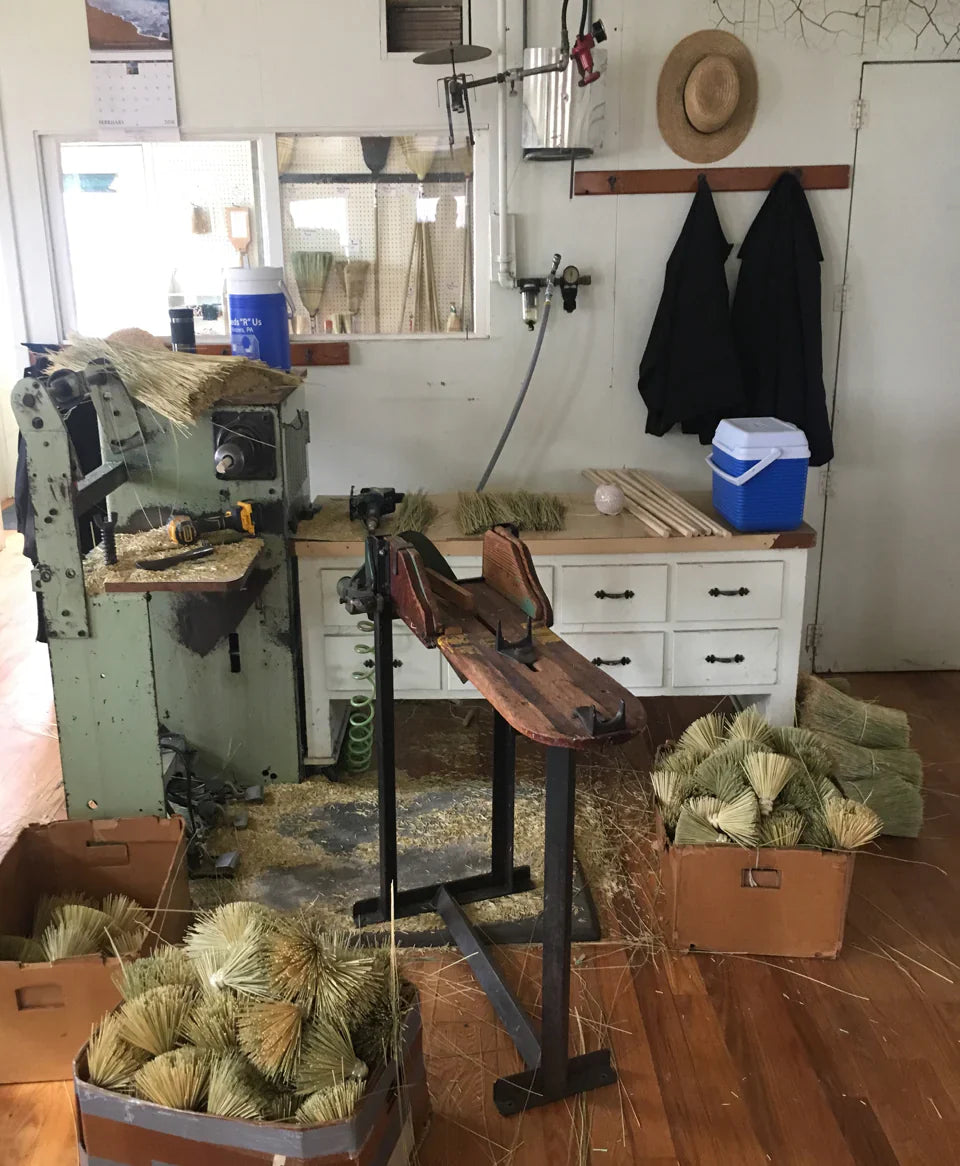 Pictured: Erin’s 1890 kick winder broom machine.