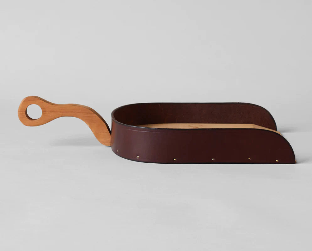 For Bryan Norris, who runs his Forager Co. in Lancaster County, Pennsylvania, the tools of custodianship provide not just a design challenge but an opportunity for creative collaboration with his community: Amish artisans. “My way of working is to seek out what someone is good at —and if [that skill] resonates with me, I’m inspired to collaborate,” Norris says. “I work with an Amish harness maker, broom-maker, rug maker, and furniture makers.” Some of those talents are evident in Forager’s collection of exquisitely wrought dustpans and hearth broom, rendered in wood and leather. “These pieces for Bloomist share a deep connection to the land, which resonates through many Amish-made goods,” he says. “The dustpan and broom are great examples of the things we use often that can be beautiful and thoughtful, rather than plain and utilitarian.”