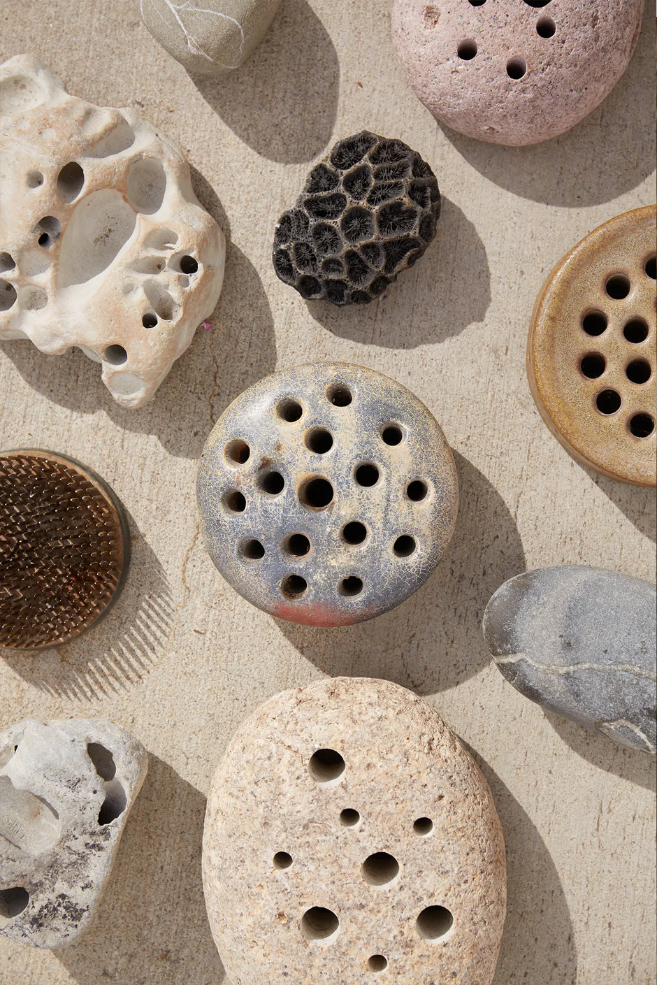 Frogs are a really great way to create structure.There are countless vintage frogs out there. They’re beautiful as objects in your house, and they’re a great way to create structure for your arrangement.I have more than a love of frogs — I have a hatred of floral foam. Floral foam is extremely toxic and basically never breaks down in the ocean. Most florists use floral foam to create structure — I’ve never used it, because it’s toxic on many levels, including not breaking down in our oceans. I believe in a more ikebana approach, using gravity and the form of the flora to create structure.