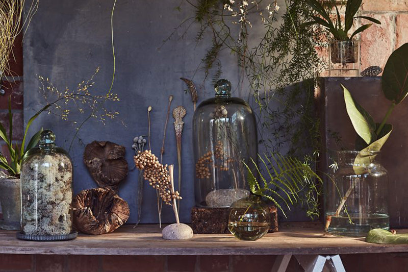 Now accessorizing our mantle is a joy β I canβt get enough of the natural, earthy decor from Bloomist. Above I have their Bronze Stoneware Cylinder Vase, their Dried Tumbleweed, and their Dried Natural Canella on display in a glass dome.