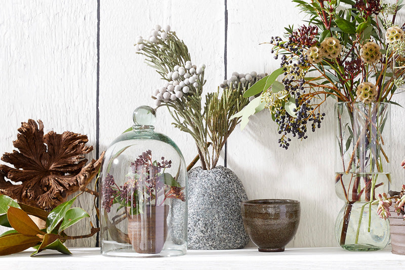 "For entertaining, we love long communal tables with a mix of nature down the center. Itβs easy to create a wild landscape with our rustic pots, beach stone vases, recycled glass cloches and jars filled with nature, moss, succulents, elements foraged from the garden. Our rustic pot is especially great for this!β βAlex Bates