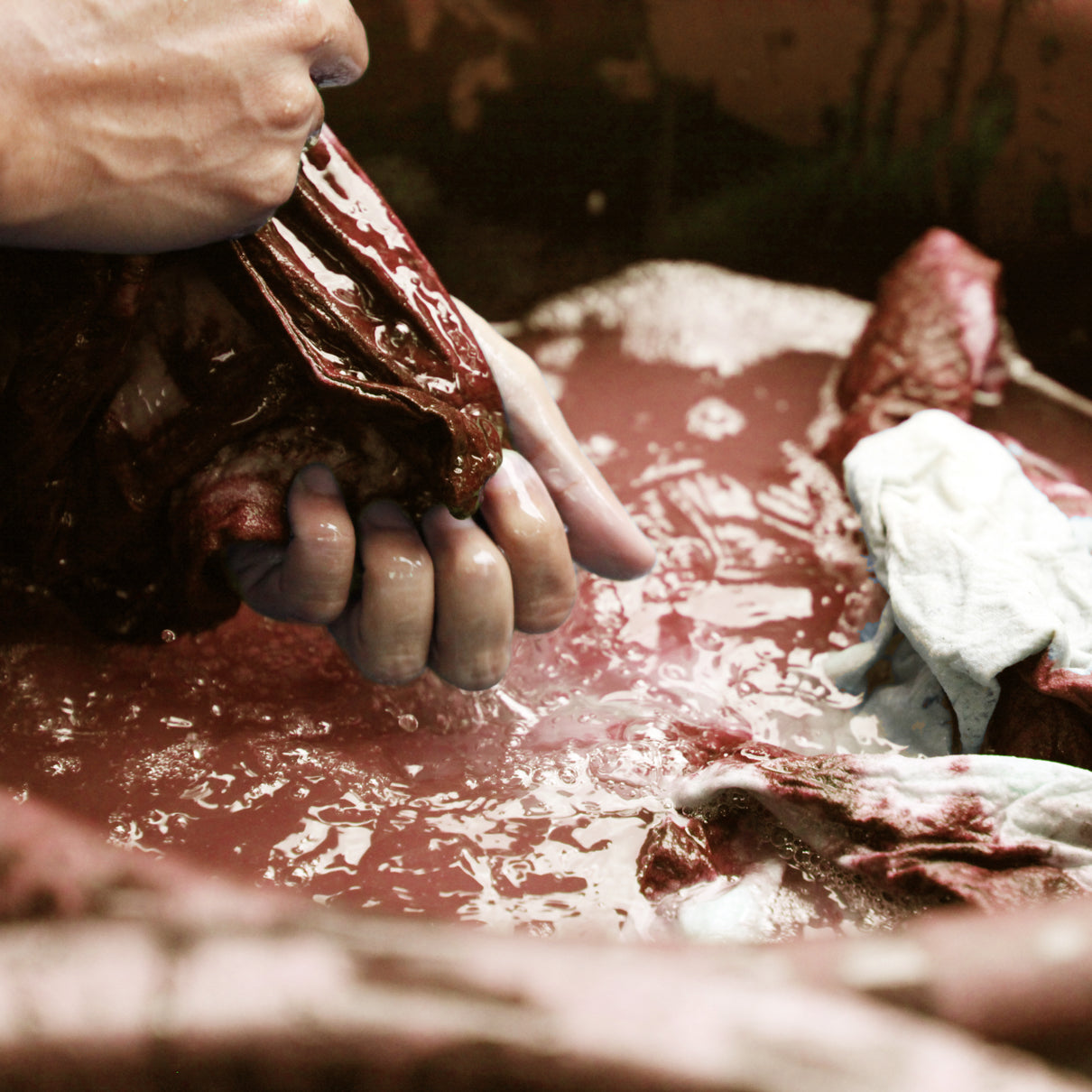 Hand dyeing comprises many methods including hand painting, immersion dyeing, kettle dyeing, and dip dyeing. It also incorporates ancient techniques that can’t be achieved by machine, like Shibori, Batik, Ikat, and mud cloth dyeing.